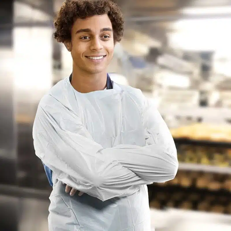 - مقاومة للمواد الكيميائية: توفر عباءات CPE الحماية ضد مجموعة واسعة من المواد الكيميائية والزيوت، مما يجعلها مناسبة للاستخدام في مختلف الصناعات التي يمثل فيها التعرض للمواد الكيميائية مصدر قلق.