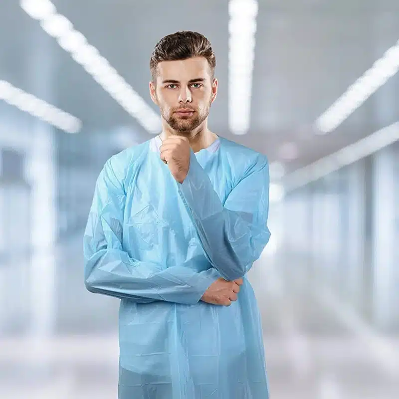 1 . الإجراءات الطبية: تعمل كحاجز فعال للميكروبات، وتعد العباءات الطبية CPE شائعة جدًا في المستشفيات. وعادةً ما يرتدي العاملون في المجال الطبي العباءات الطبية أثناء الإجراءات الطبية لحماية أنفسهم ومرضاهم من التعرض للسوائل وغيرها من المواد التي يحتمل أن تكون خطرة.
