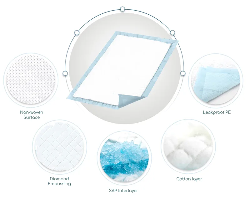 To avoid leaks, put the blue side down and the soft side up. Change the pad when it feels heavy or looks wet. Use it with other protection for extra safety. Check out our options like Private Custom Printing Chux Pads Disposable 1 or Extra Large Disposable Bed Pads 2 for bigger needs. Also, try Disposable Bed Pads with Adhesive Strips 3, TPU Waterproof Mattress Protectors 4, and Disposable Absorbent Under Pad for Adult and Child 5 for full care!