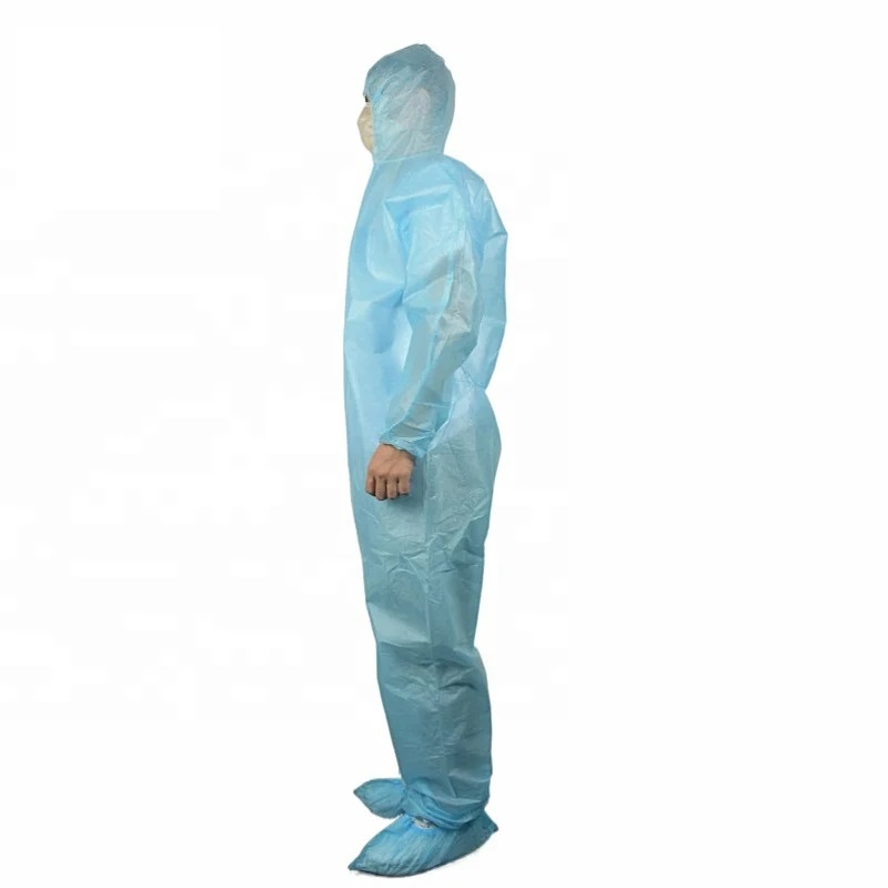 Blue Disposable Coveralls with Hood and Boots are made from durable, high-quality PP+PE material, providing full-body protection against dust, dirt, and non-hazardous contaminants. The coveralls come with an attached hood and boots, ensuring complete coverage from head to toe. The blue color adds a professional look while making workers easily identifiable in busy environments. These coveralls are designed for comfort, offering flexibility and breathability, while the integrated hood and boots provide added security and protection in challenging work environments.