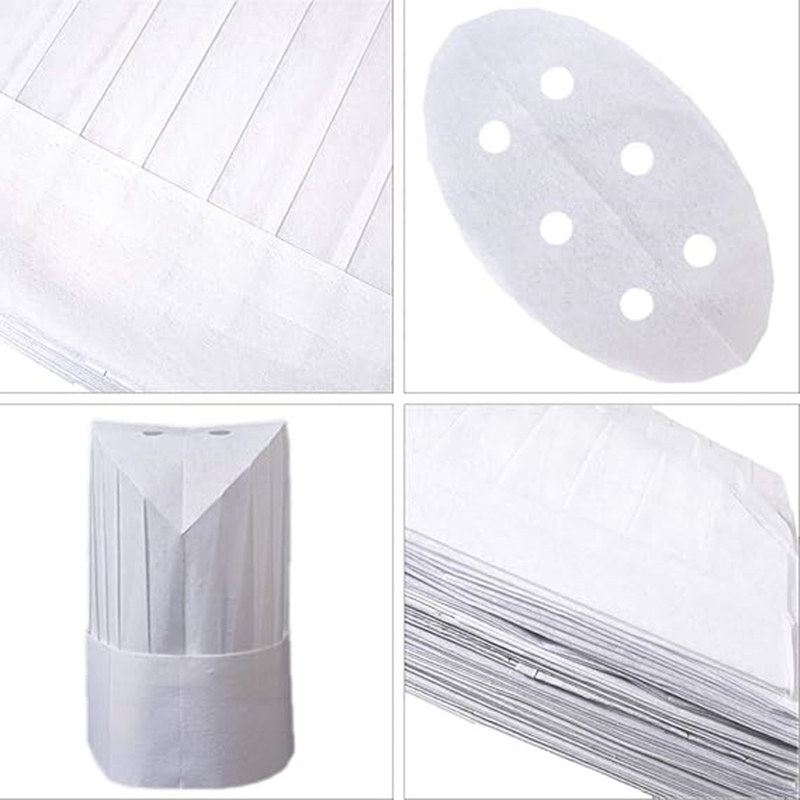 Enhance the professionalism and comfort of your kitchen staff with our versatile Disposable Chef Hats. Available in both high-quality paper and durable non-woven fabric, these hats are designed to offer style, comfort, and functionality for any culinary environment. Our chef hats feature ventilation holes at the top, ensuring maximum airflow to keep your staff cool and comfortable during long shifts.