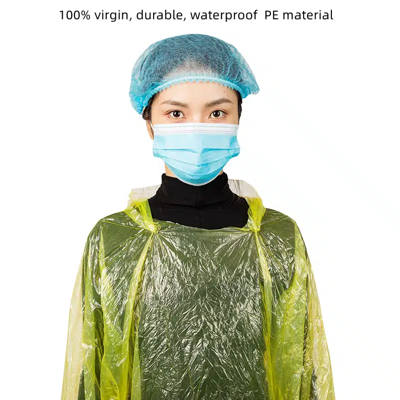 • Material: Made from durable, waterproof PE material, our disposable raincoat provides reliable protection from the elements.