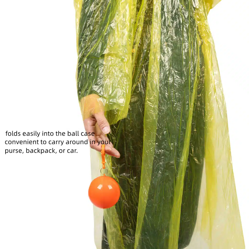 • Compact Design: The raincoat folds easily into the included ball case, making it incredibly convenient to carry around in your purse, backpack, or car.