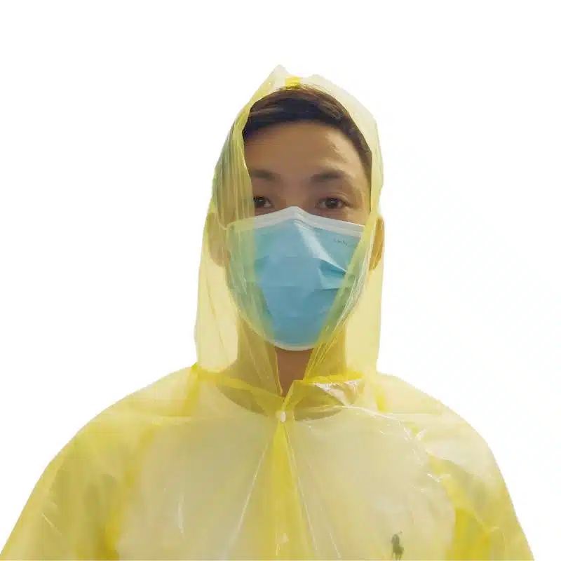 Stay dry and protected even in the heaviest downpours with our Disposable PE Raincoat with Hood and Buttons. Made from high-quality polyethylene (PE) material, this raincoat is lightweight, waterproof, and resistant to liquids, ensuring maximum protection against rain and wet conditions.