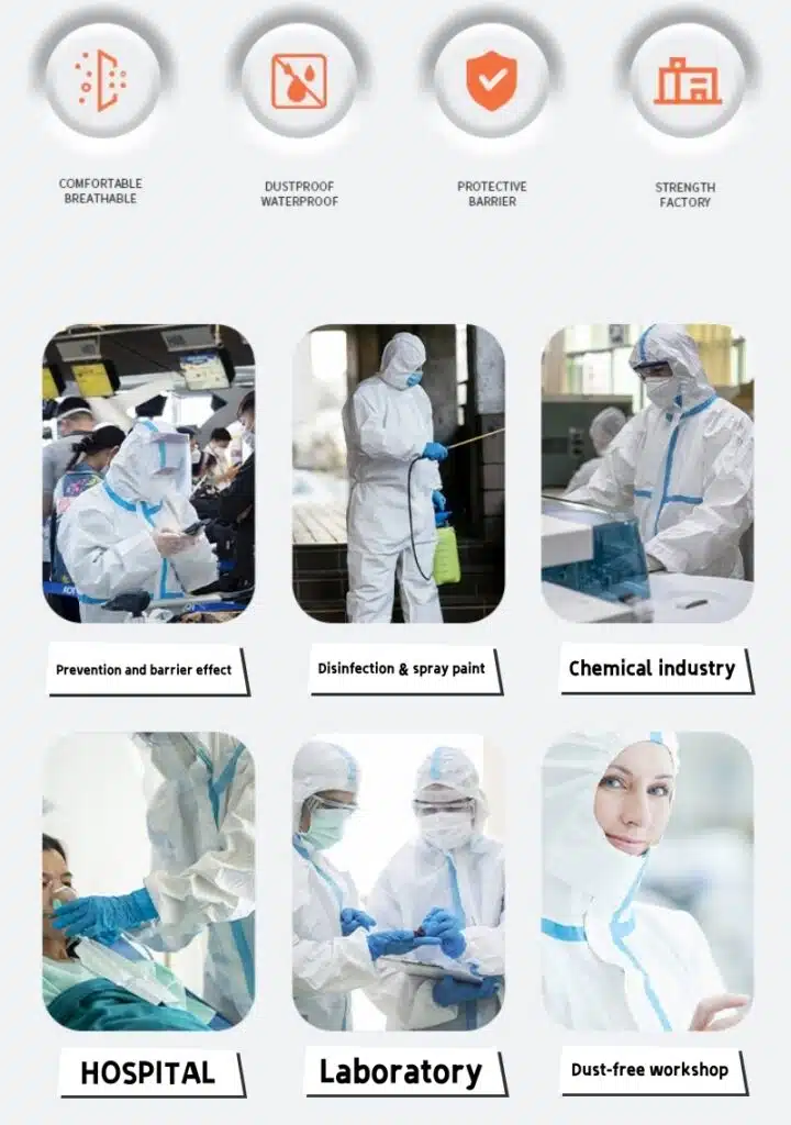 Our Disposable Full Body Protective Medical Coverall is designed to provide a high level of protection and comfort during various medical procedures and hazardous environments. Made from microporous material, this coverall is lightweight, breathable, and resistant to liquid and airborne particles. With a hood for added coverage and stitch seam parts sealed with tapes, you can confidently work in a safe and secure environment.