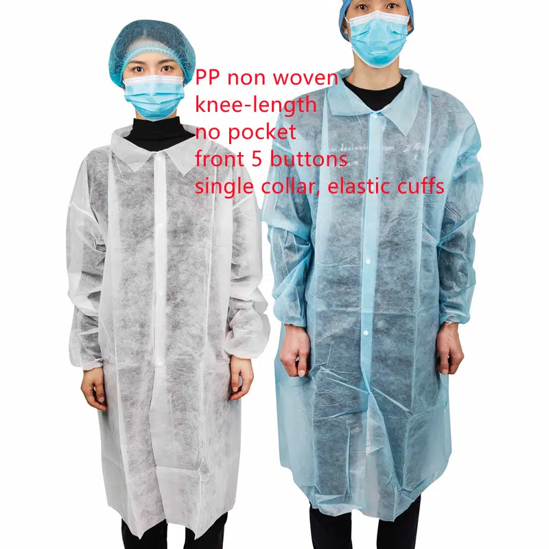 Featuring a front with 5 buttons, a single collar, elastic cuffs, and no pockets, these smocks offer a secure and comfortable fit while ensuring ease of movement. Available in both white and blue colors, our disposable knee-length smocks are suitable for a wide range of applications, including healthcare, laboratory, food service, and other professional environments.