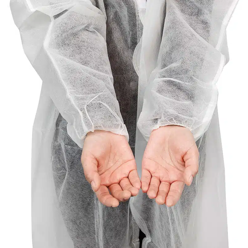 The lightweight and breathable material of disposable PP non woven lab coats ensures comfort during extended wear. In addition, the non-woven fabric allows for better air circulation, helping to keep the wearer cool and comfortable.