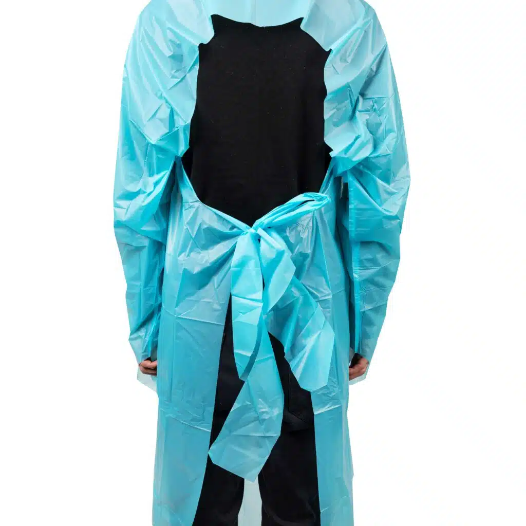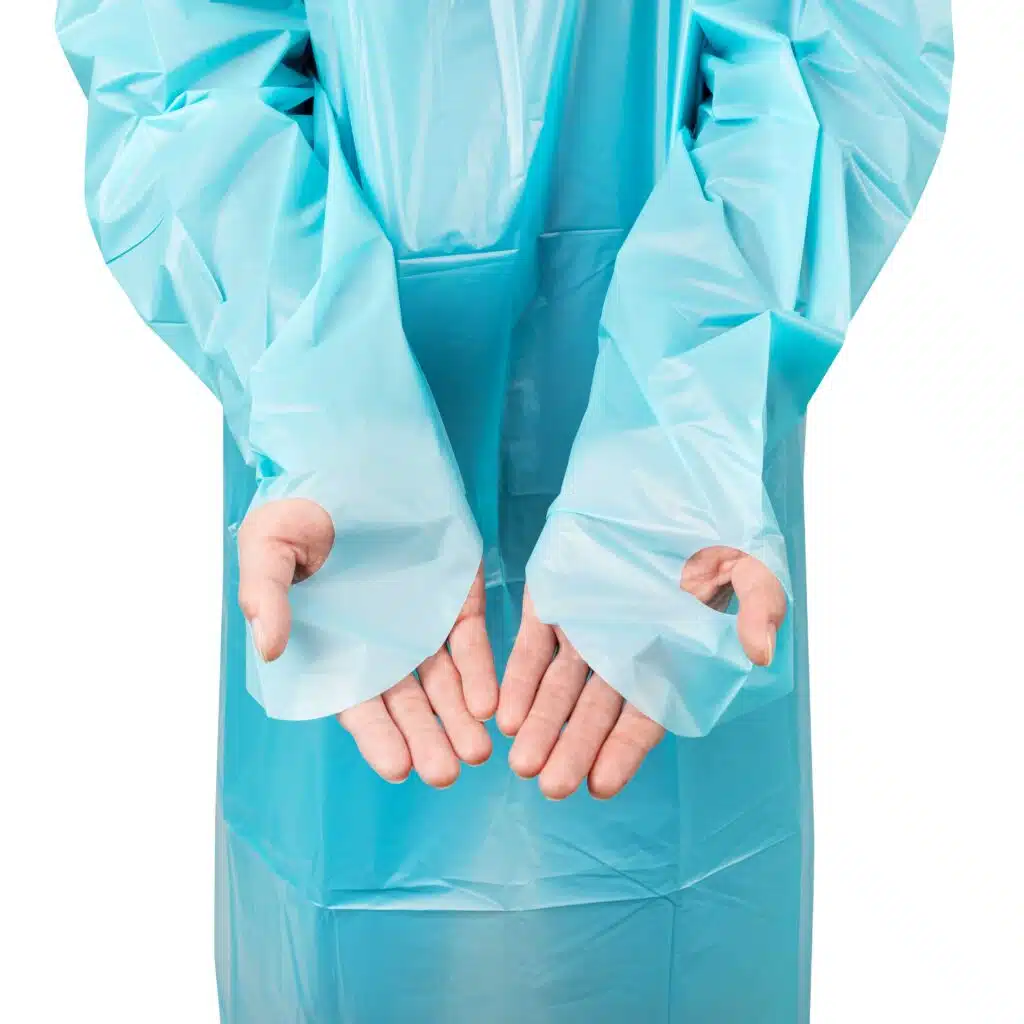 The CPE Isolation Gown, adhering to the AAMI Level 2 Standard, epitomizes the fusion of innovative design and enhanced protection. Crafted using embossed Chlorinated Polyethylene (CPE) material weighing 40g, the gown offers unparalleled safety without compromising on comfort. Its tailored features ensure that medical professionals and frontline workers receive an optimal blend of function and form.